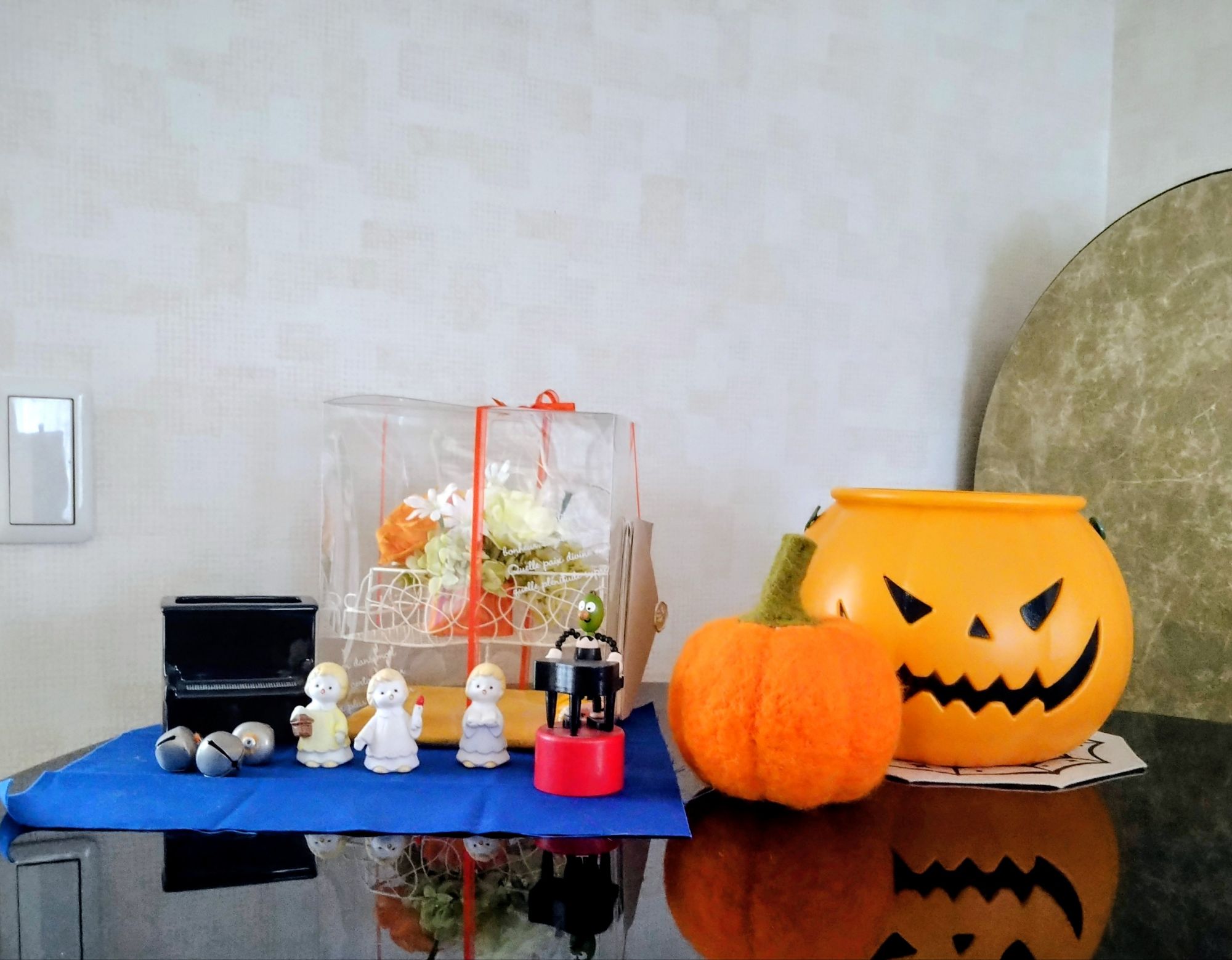 そして、当ピアノ教室(太田市)のピアノの上も、「ハロウィン🎃」と被って「金木犀カラー」になっております。