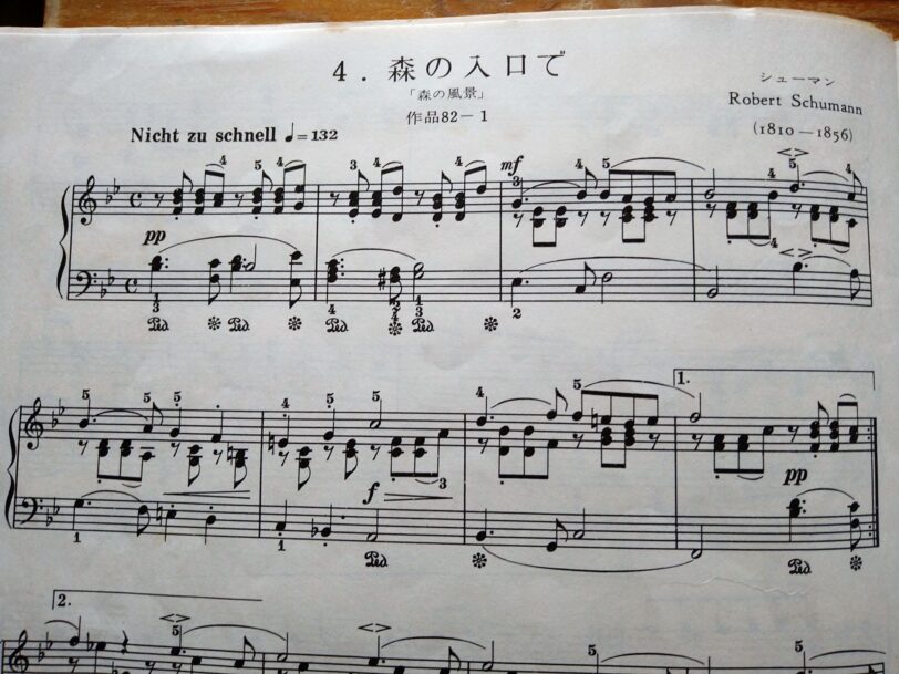 演奏しました 、シューマン作曲の『森の入口』という曲。この曲は、実は、ピアノのレッスンを始めたばかりの頃の「思い出」がある曲なのです。