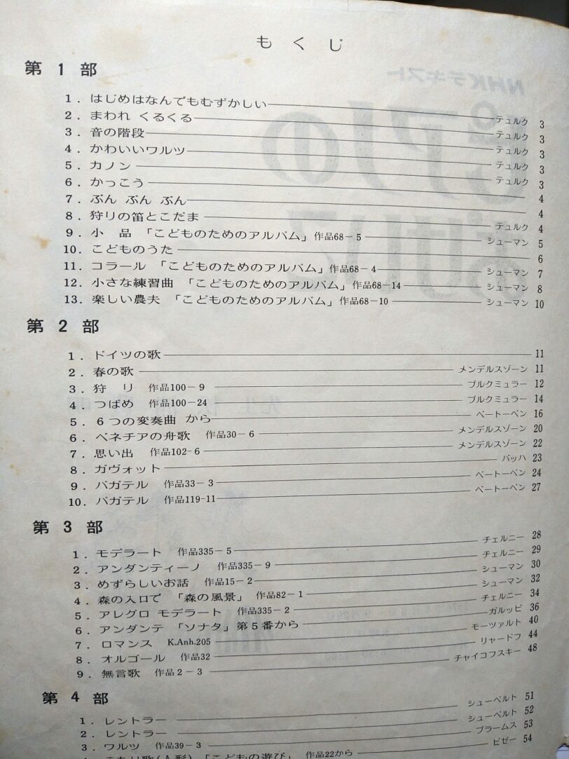 その時、番組で使っていたテキストを母に頼んで買ってもらい、当時は 楽譜が高度過ぎてわからないにも関わらず、テキストをみながら番組を見ていました(笑)