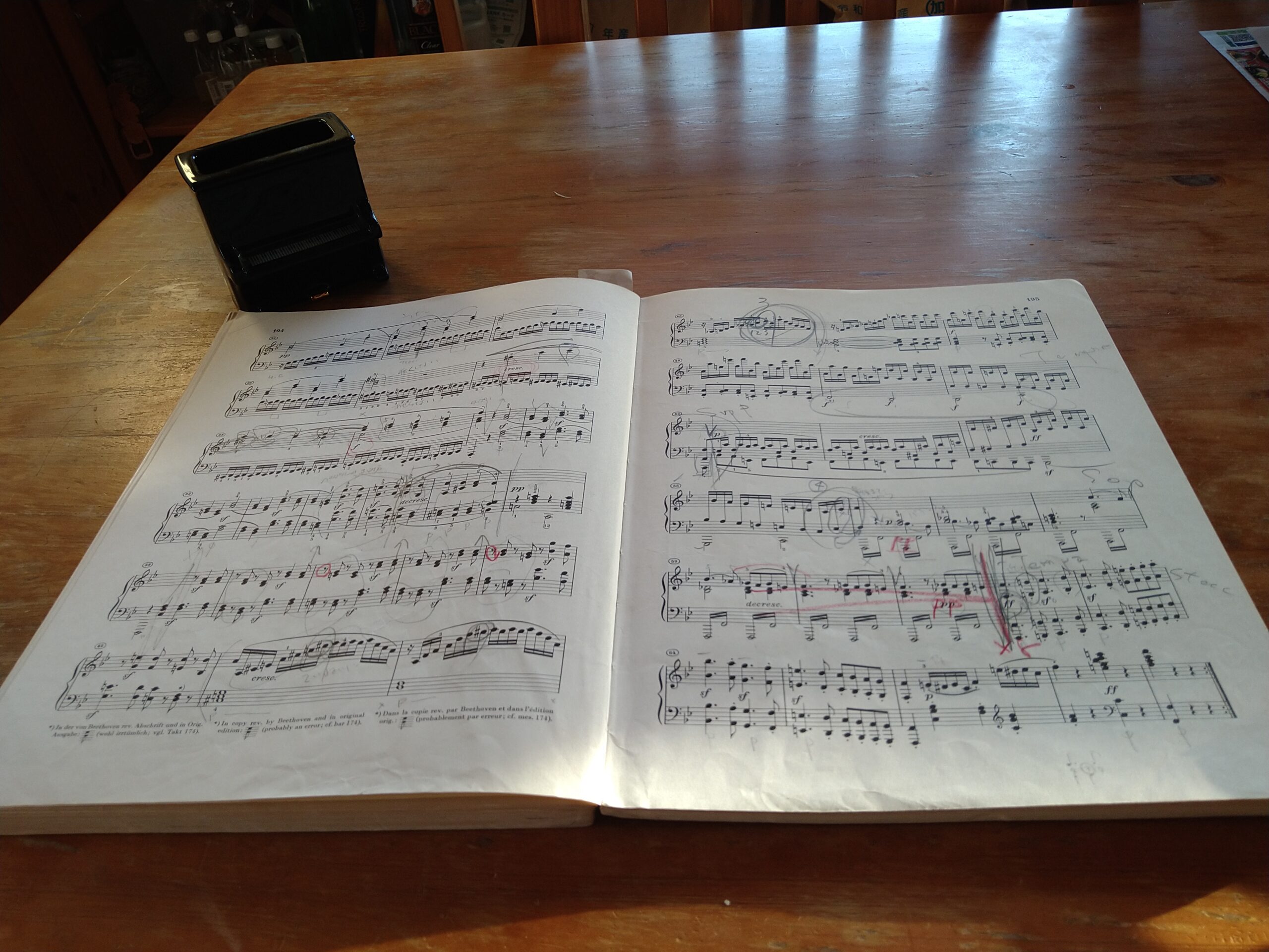 見出しの画像は入試の時に弾いた曲の楽譜です。遠目に撮ってみました。