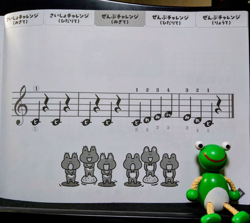 楽譜では「右手が弾けたらOK!」になっていますが、出来そうであれば、少し内容を付け足してレッスンをしています。